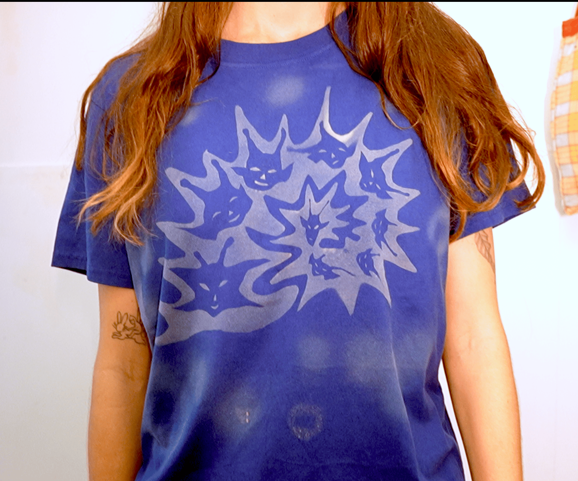 100% Cotton Hand printed shirt, One of a kind and Made in Australia. ーtwo varieties black or blue