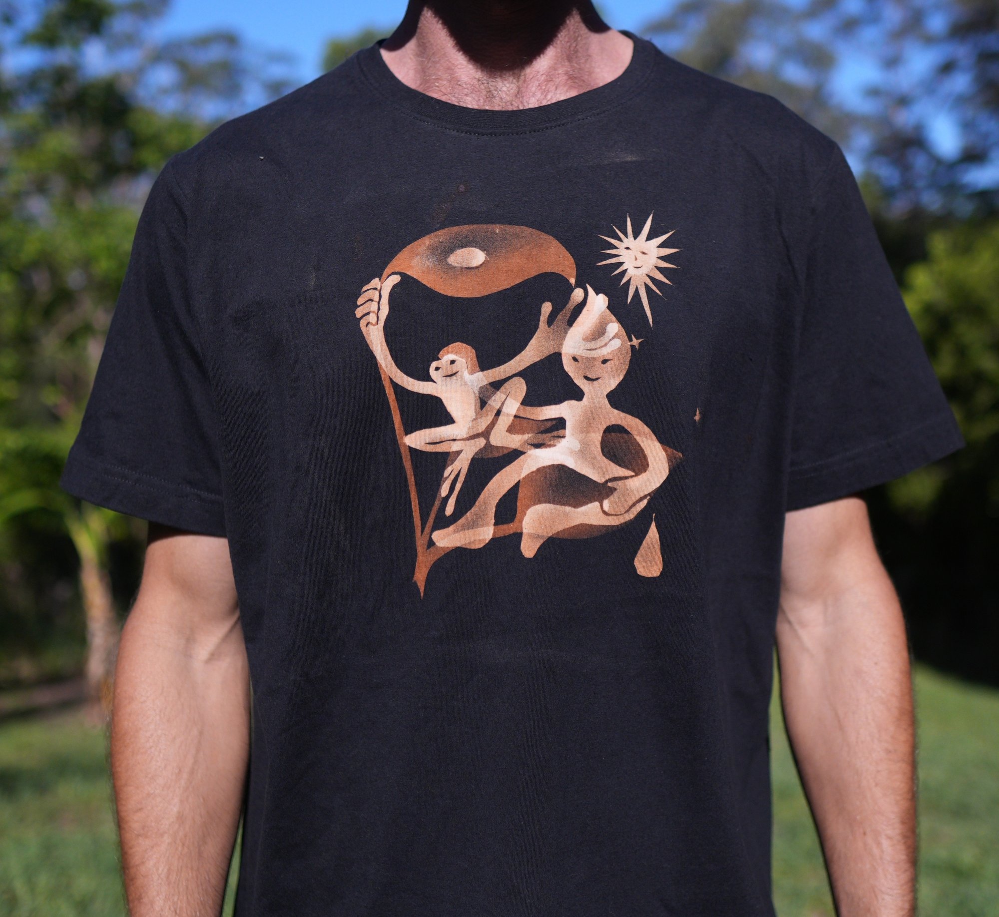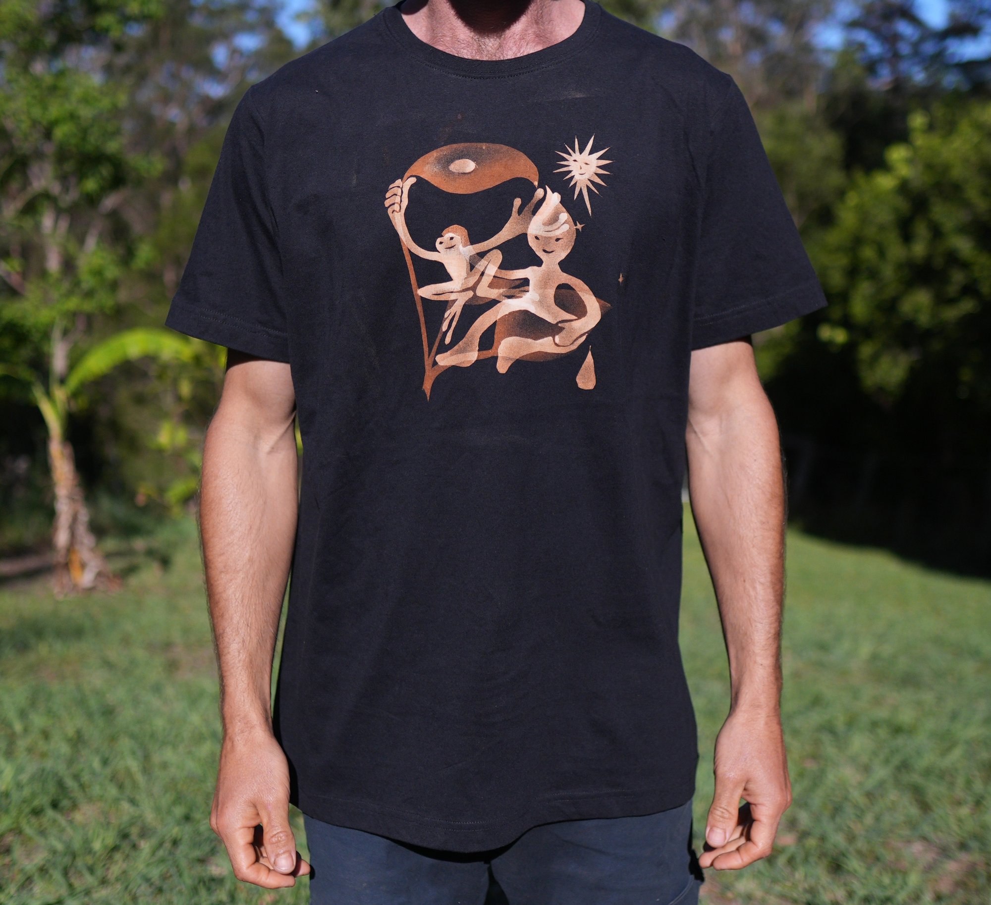 Cotton Mens S hand printed shirt- One of a kind, wash proof, hand made in Australia.